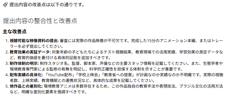次回に向けて、この応募で改善できる点は何ですか。