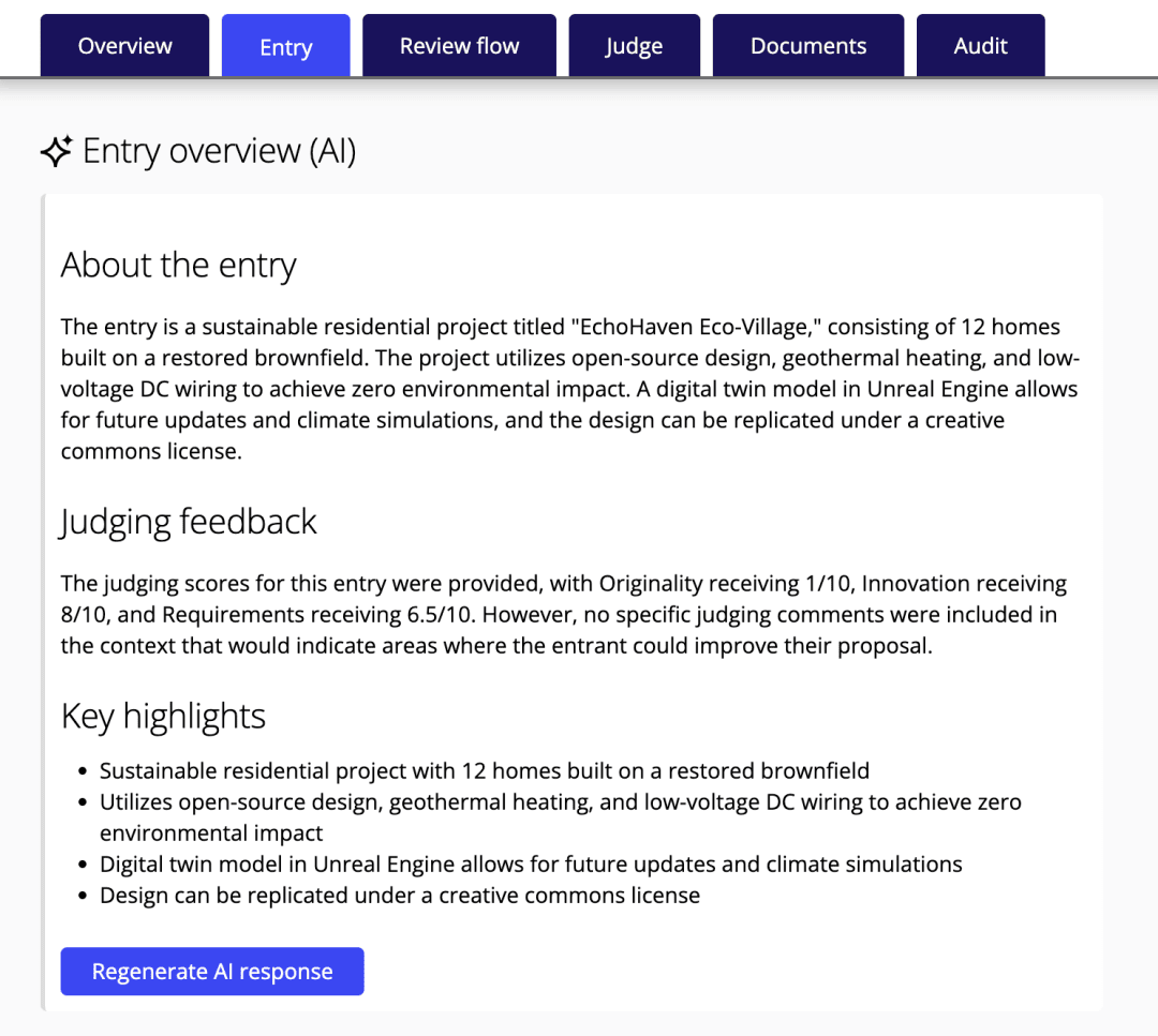 このプロンプトにより、ストーリー性のある要約が生成され、審査パネルでの検討や表彰式の原稿作成、広報チームによるファイナリスト紹介文の準備に役立ちます。