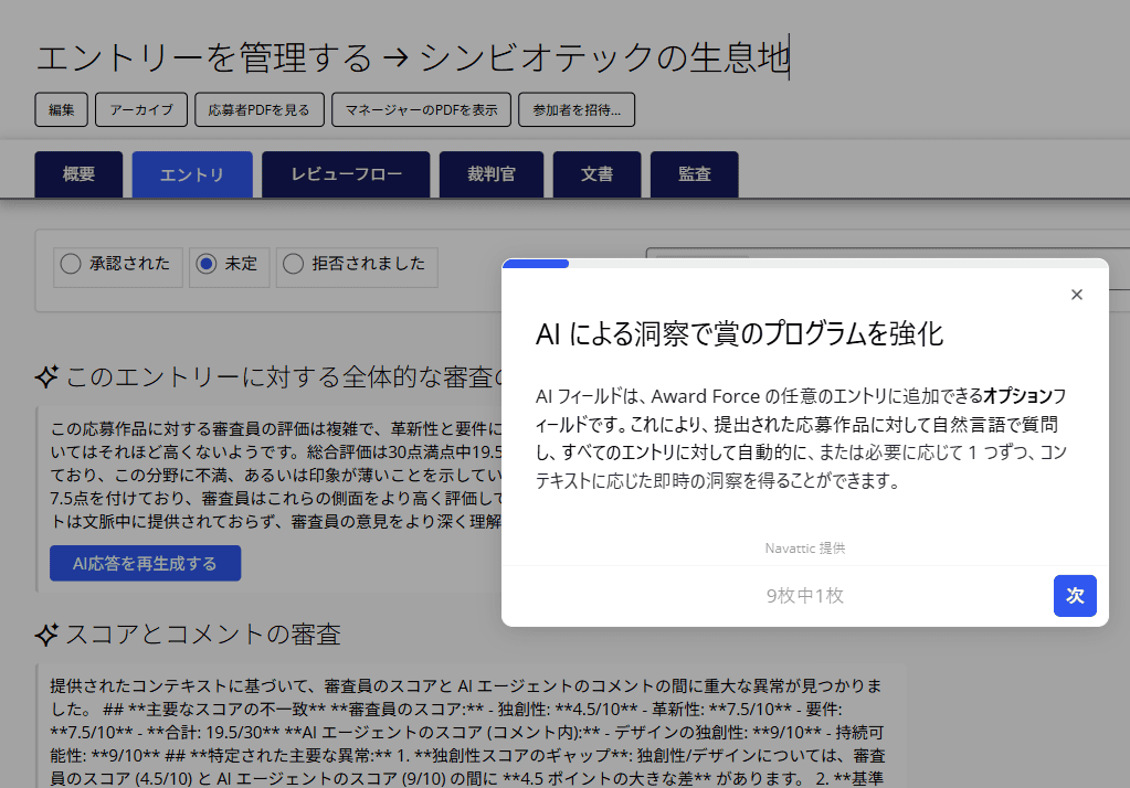 応募内容や審査結果から、より深い洞察を得ます。応募者への教育的フィードバックや、次年度の表彰事業改善に活用できます。